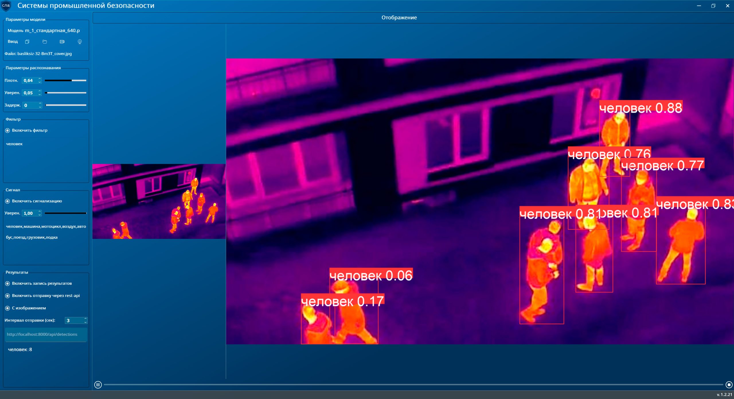 Поддержка подключения нескольких видеокамер и тепловизоров.
