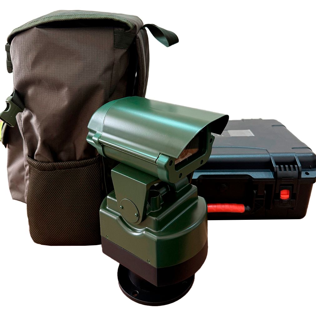 - Универсальность применения. Комплекс можно установить на расстоянии до 300 м. от оператора. Управление поворотным модулем (панорамирование на 360° и наклон по вертикали), а также зумом осуществляется с ноутбука или рабочей станции видеонаблюдения.